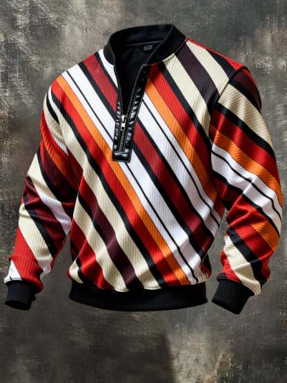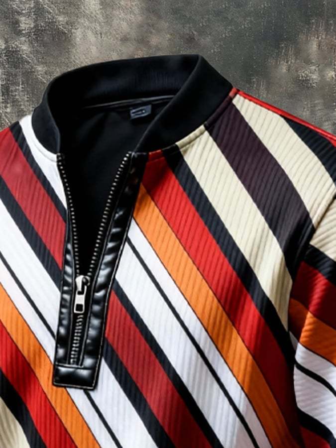 Men's Vintage Color-Block Printed Zip-Up Hoodie