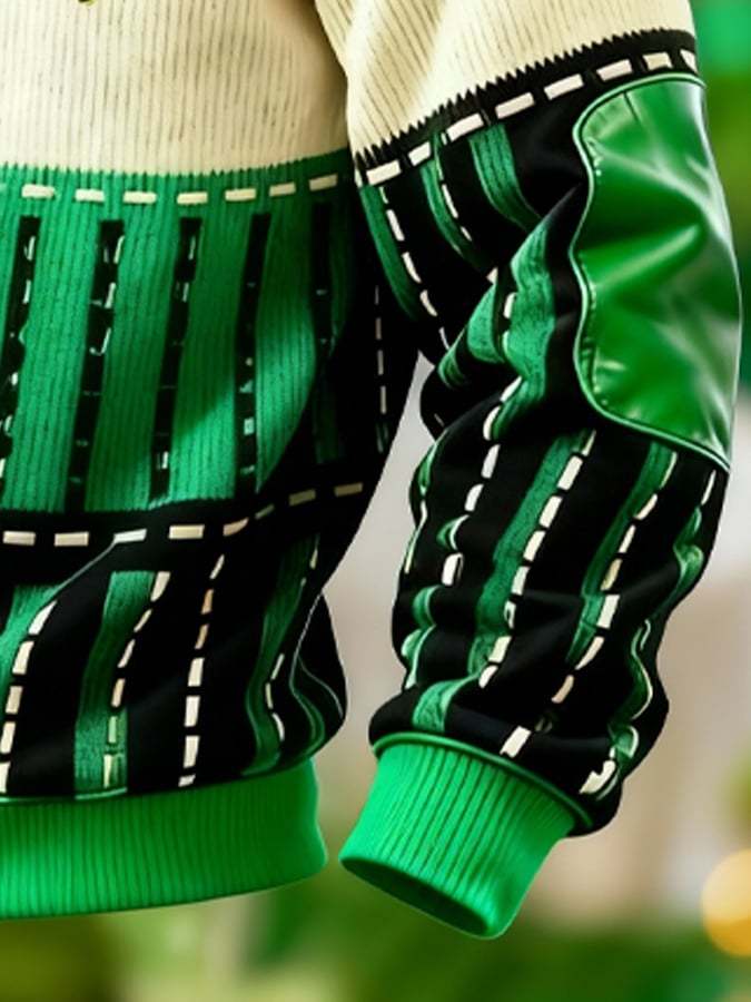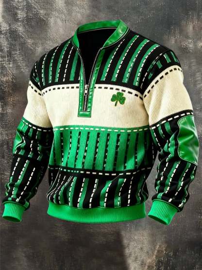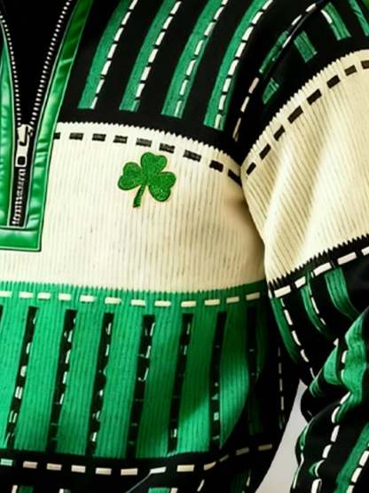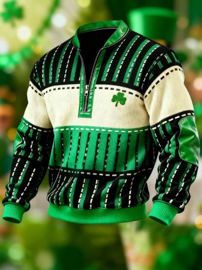 (Detachable Shamrock Brooch Included) Men's Casual St. Patrick's Day Color-Block Half-Zip Stand-Collar Long-Sleeved Sweatshirt