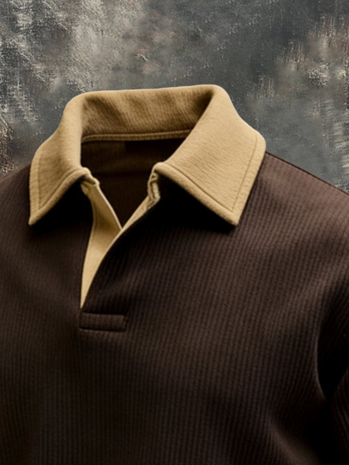 Men's Vintage Color-Block Polo Collar Sweatshirt