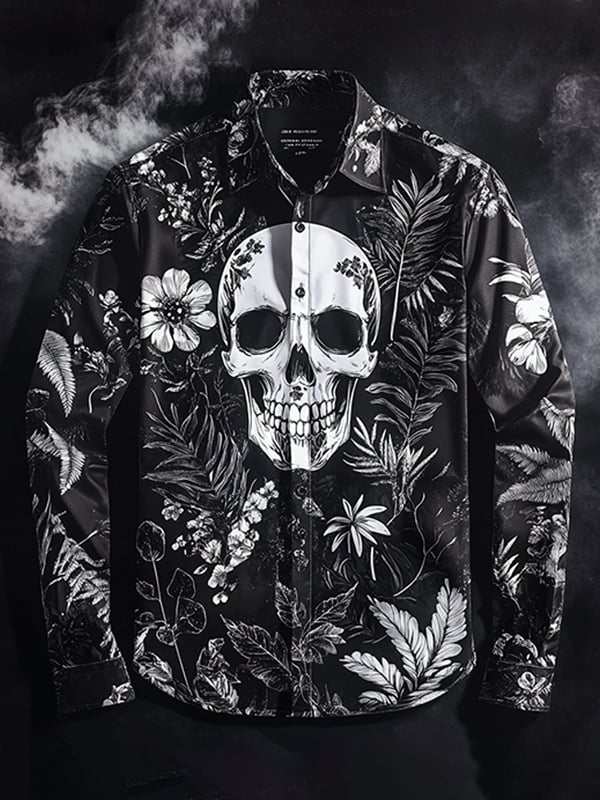 Men's Outdoor Vintage Skull and Floral Long Sleeve Shirt