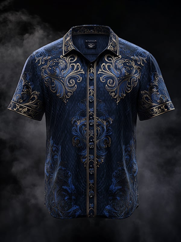 Men's Dark Gothic Skull Pattern Short Sleeve Shirt