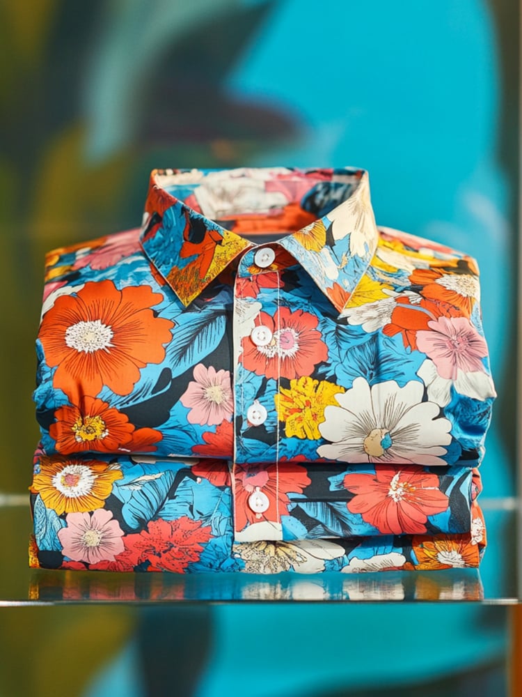 Mens Satin Luxe Hawaiian Colorful Floral Short Sleeve Button Down Shirt