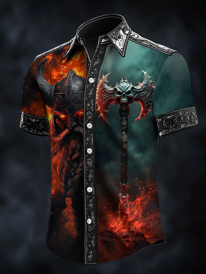 Men's casual vintage Viking warrior satin shirt
