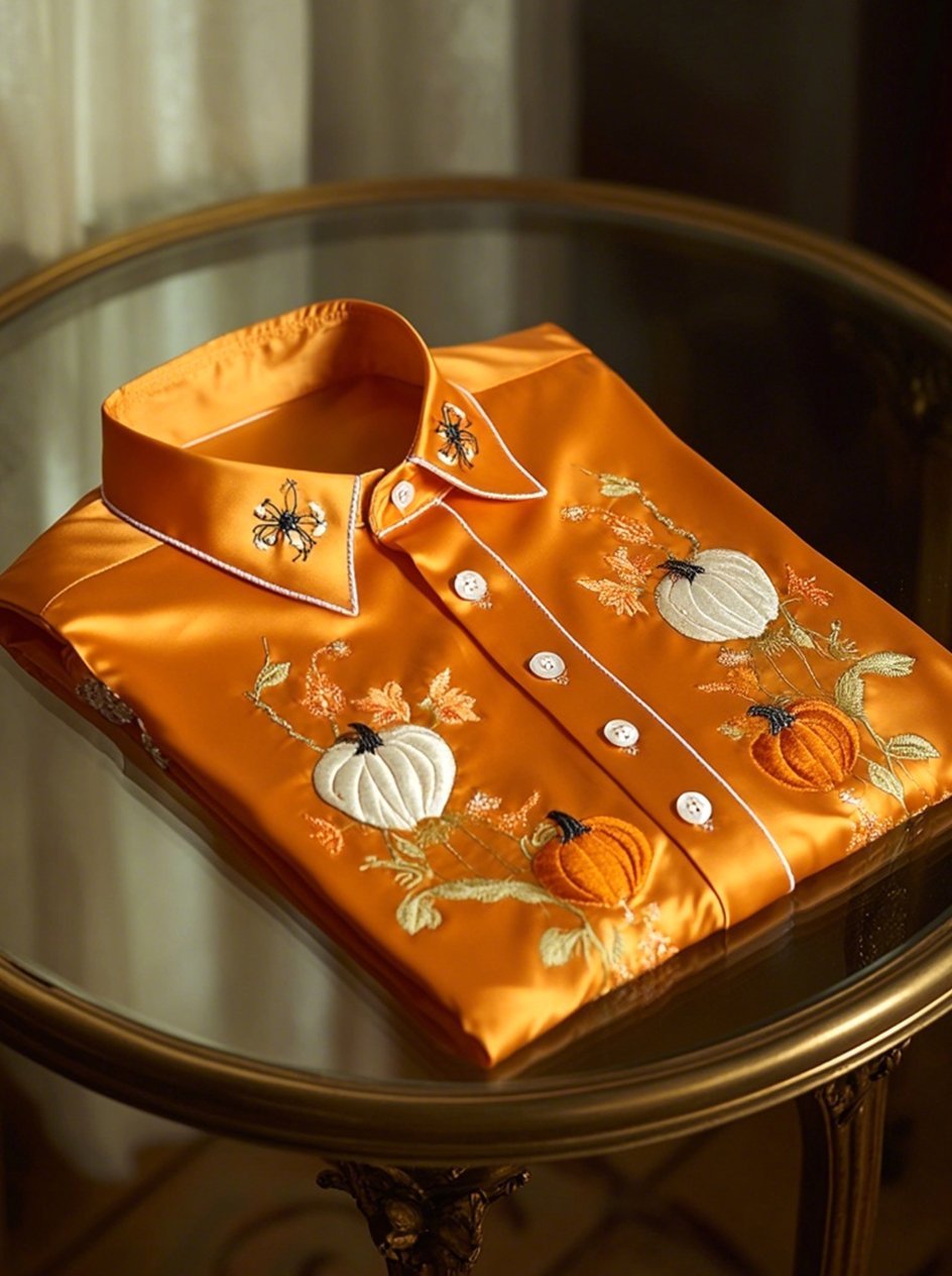 Men's Satin Halloween Luxe Long Sleeve Button-Down Shirt