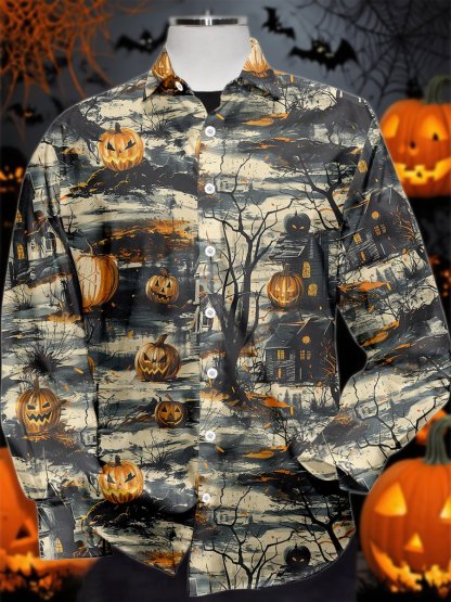 Men's Vintage Halloween Print Long Sleeve Shirt