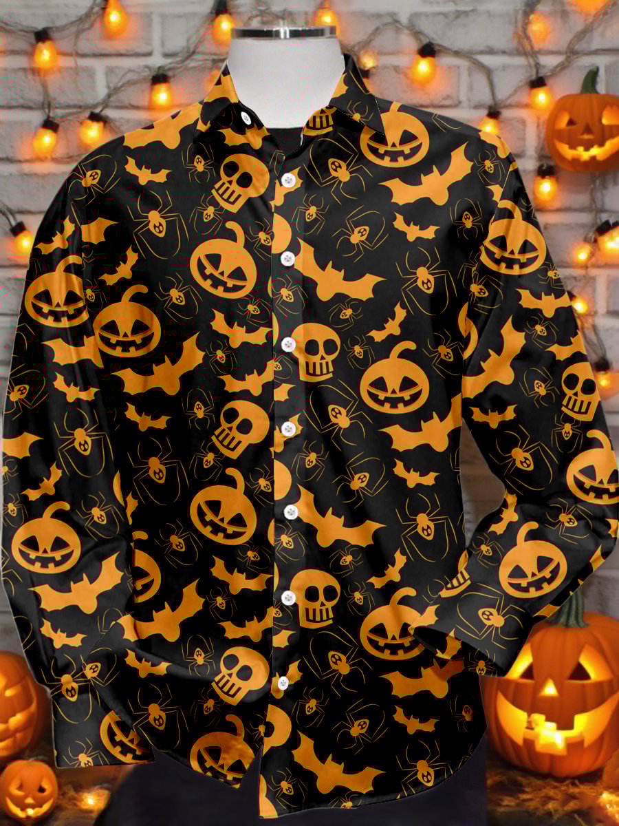 Men's Vintage Halloween Print Long Sleeve Shirt