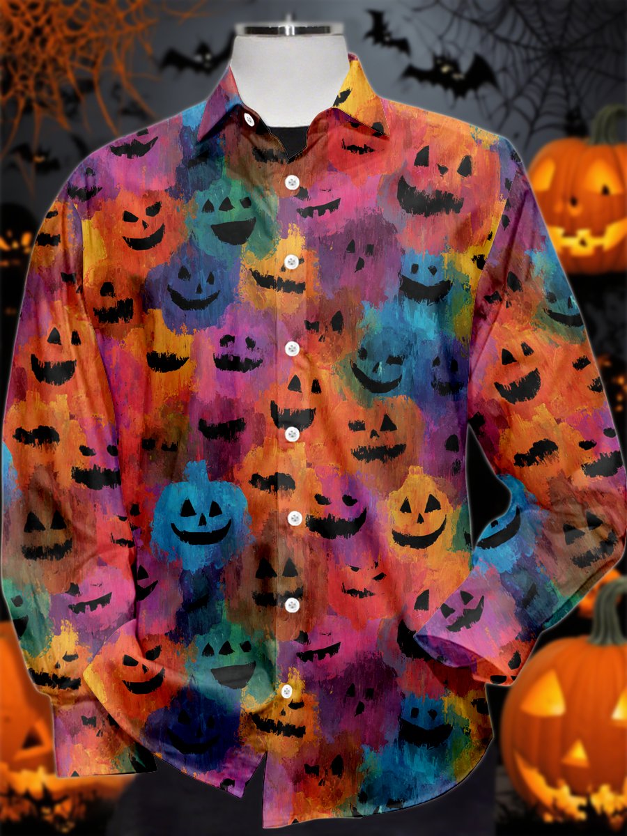 Men's Vintage Halloween Print Long Sleeve Shirt