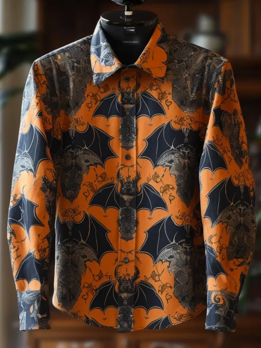 Men's Gothic Dark Halloween Skull Print Long Sleeve Shirt