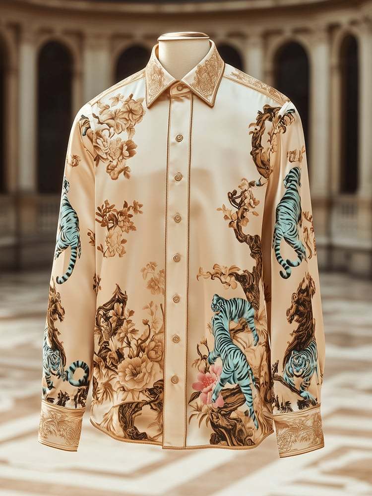 Men's Satin Luxe Baroque Long Sleeve Button Down Shirt
