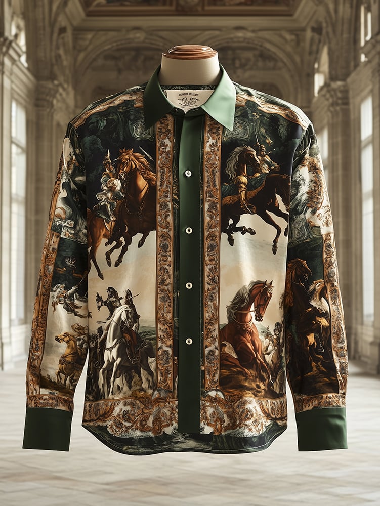 Men's Satin Luxe Baroque Long Sleeve Button Down Shirt