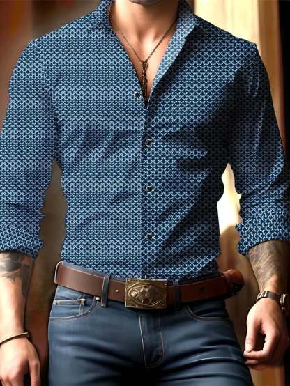 Men's Street Style Business Casual Printed Long Sleeve Shirt