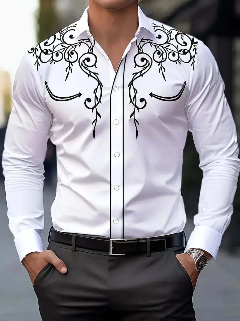 Men's Street Style Business Casual Printed Long Sleeve Shirt