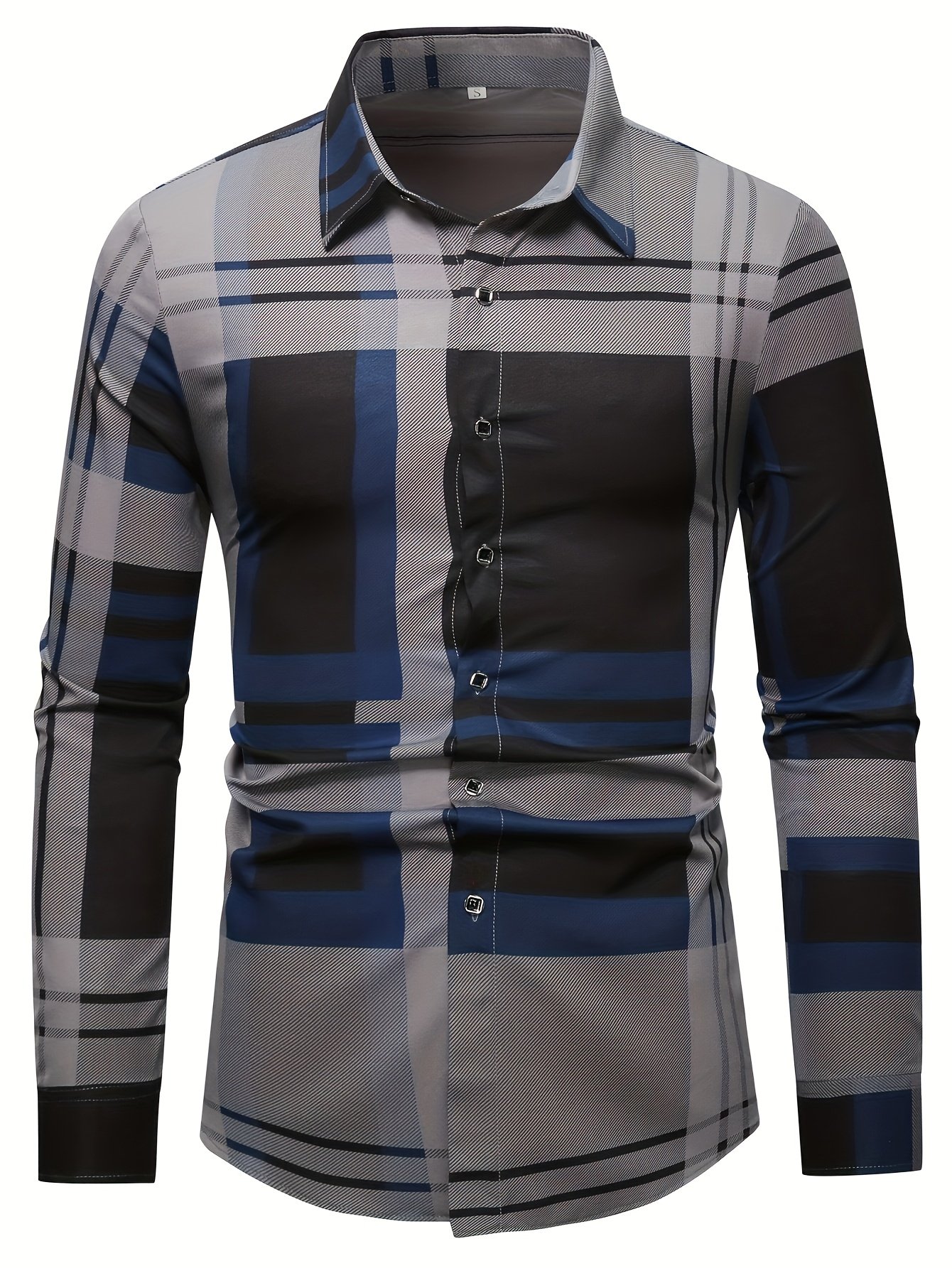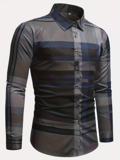 Men's Street Style Business Plaid Casual Printed Long Sleeve Shirt