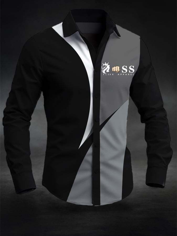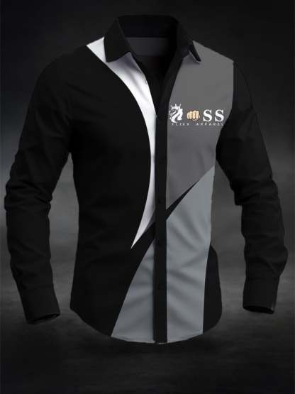 Men's Retro Letter Design Printed Business Long Sleeve Shirt