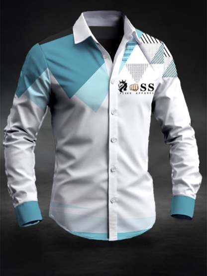 Men's Retro Letter Design Printed Business Long Sleeve Shirt