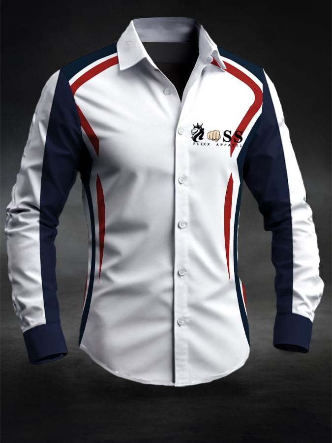 Men's Retro Letter Design Printed Business Long Sleeve Shirt
