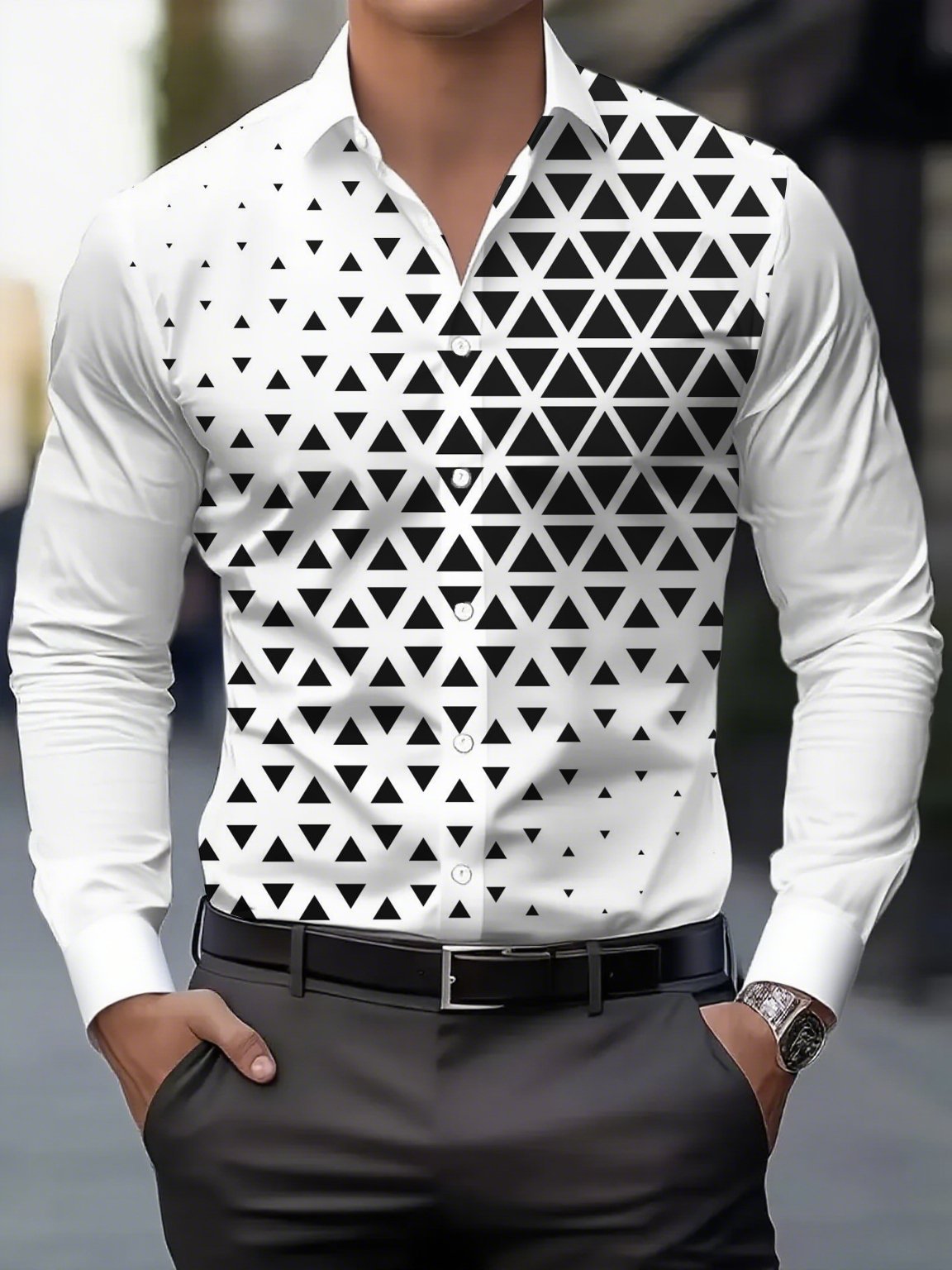 Men's Street Style Business Casual Printed Long Sleeve Shirt