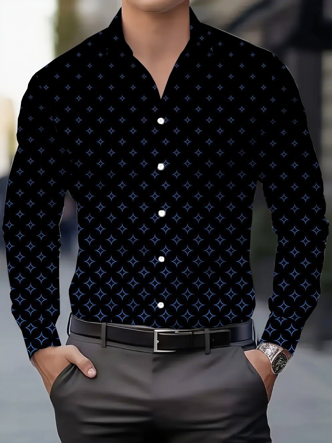 Men's Street Style Business Casual Printed Long Sleeve Shirt