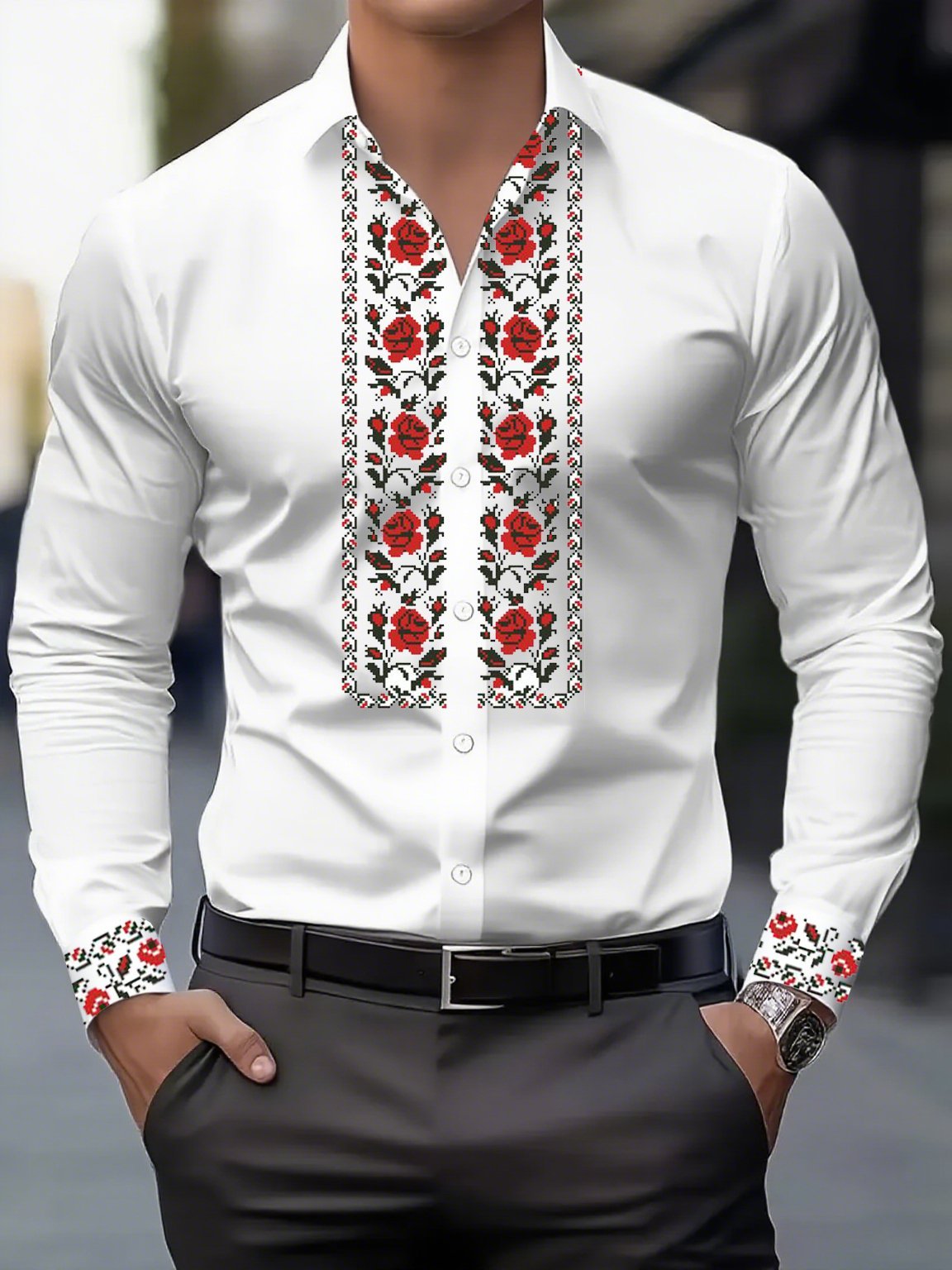 Men's Street Style Business Casual Printed Long Sleeve Shirt