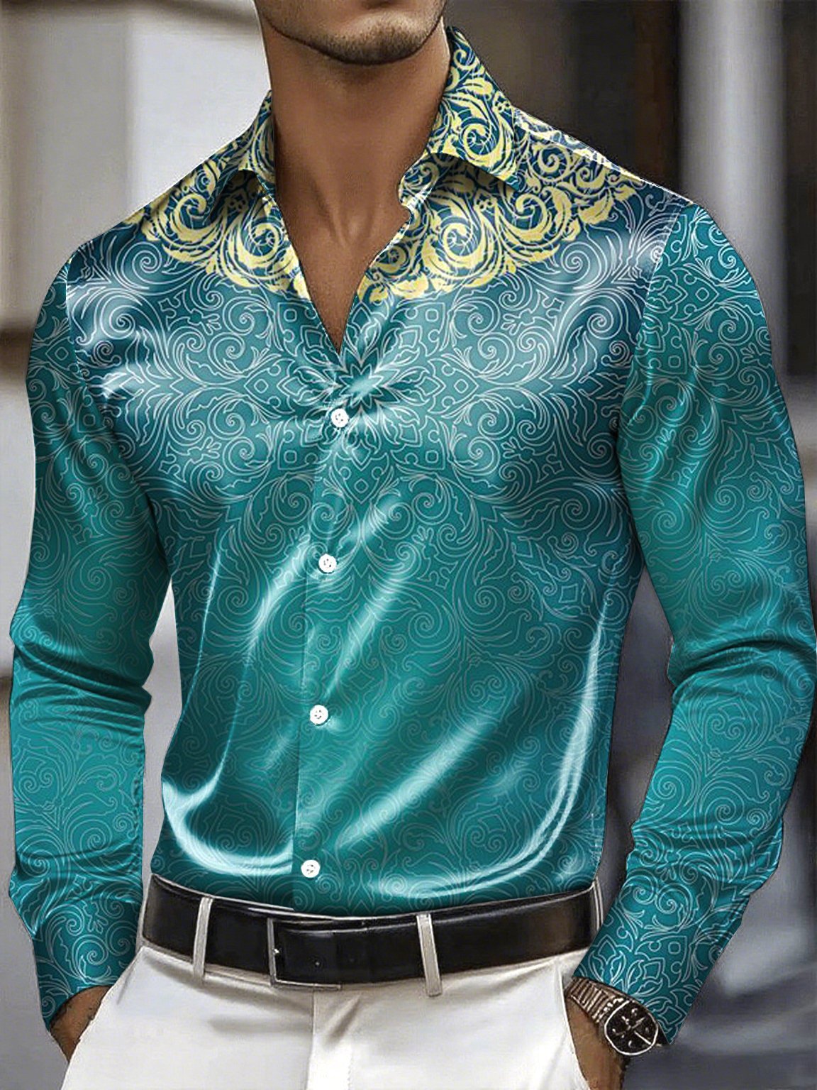 Men's Satin Luxe Long Sleeve Button Down Shirt