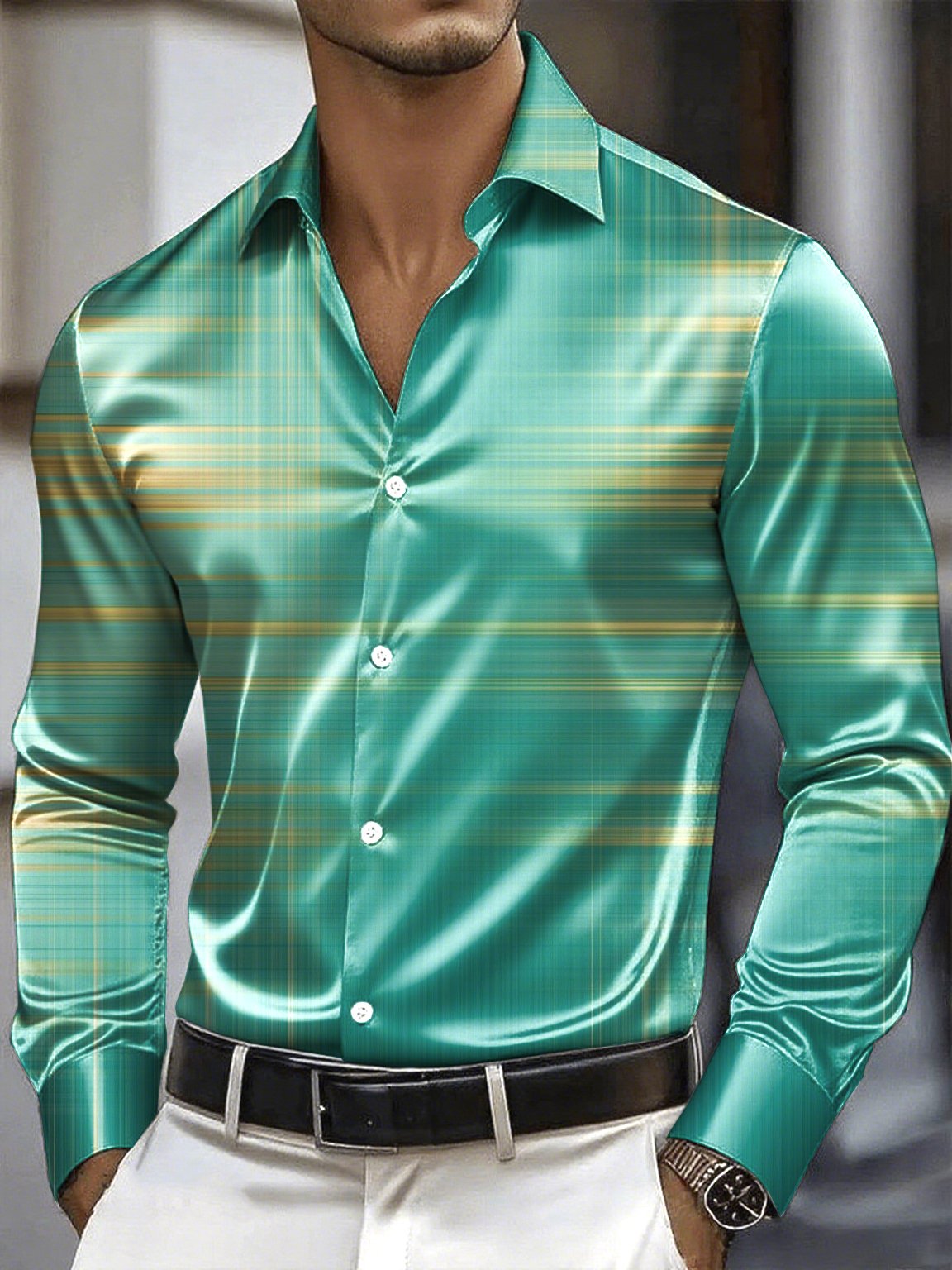 Men's Satin Luxe Long Sleeve Button Down Shirt