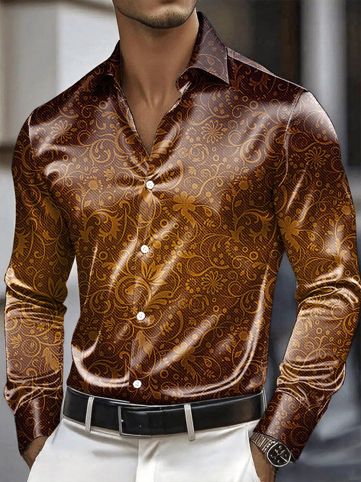 Men's Satin Luxe Long Sleeve Button Down Shirt
