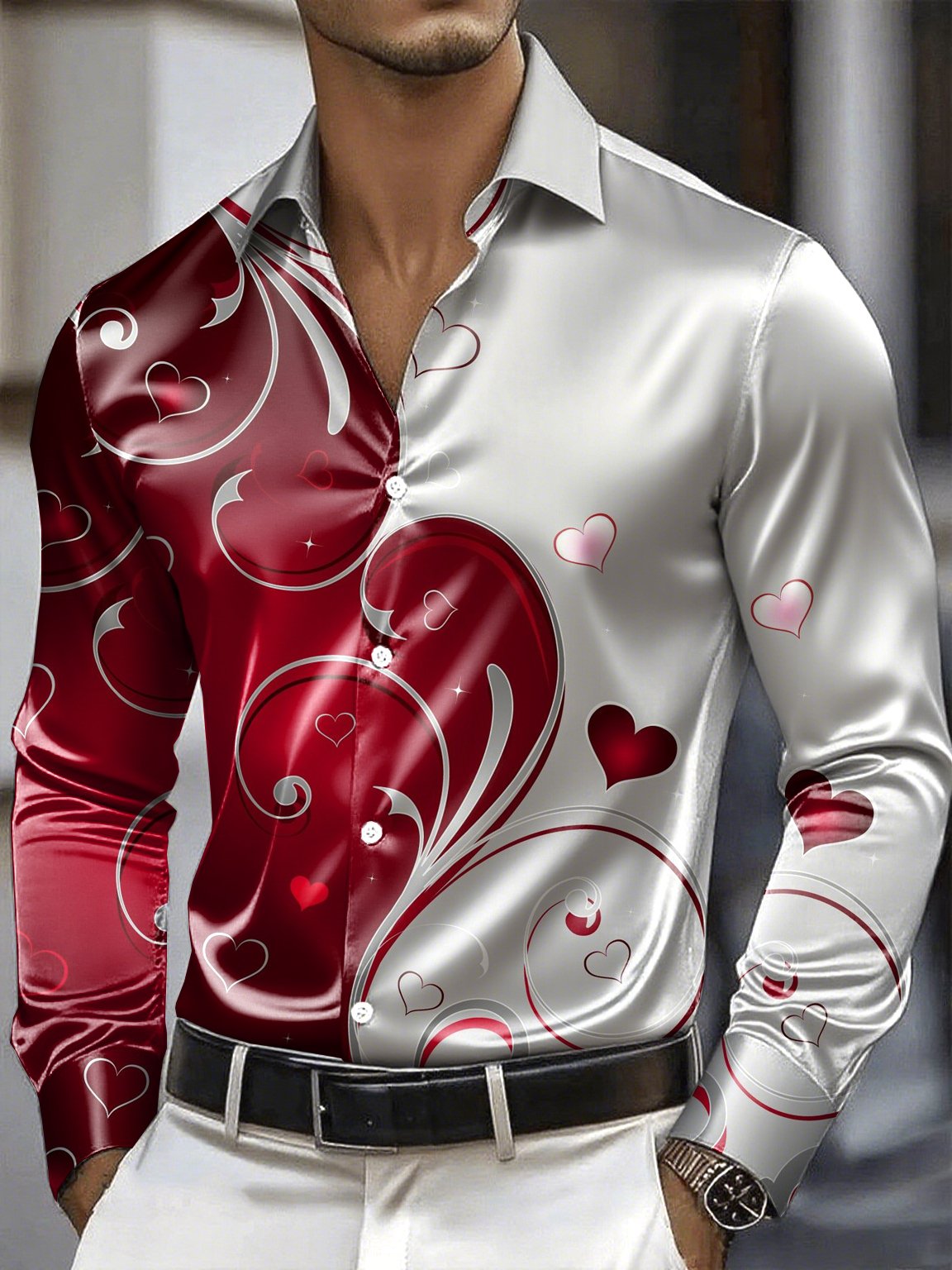 Men's Satin Luxe Long Sleeve Button Down Shirt