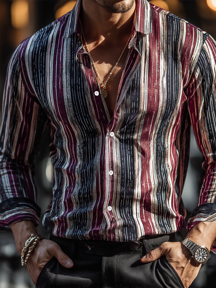 Men's Business Casual Strped Print Long Sleeve Shirt
