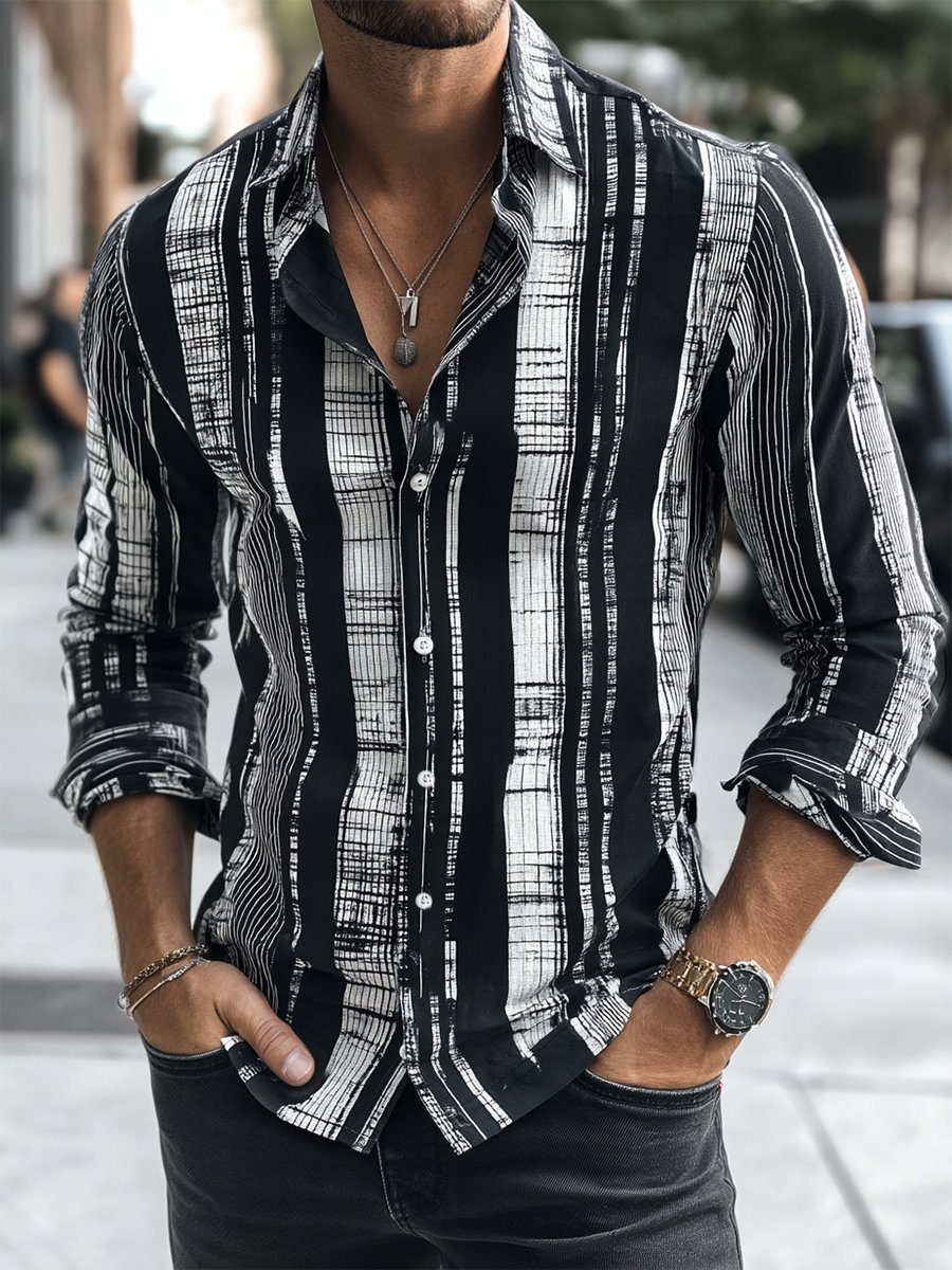 Men's Business Casual Strped Print Long Sleeve Shirt