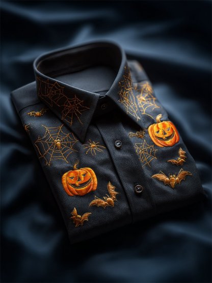 Men's Retro Casual Halloween Art Long Sleeve Shirt