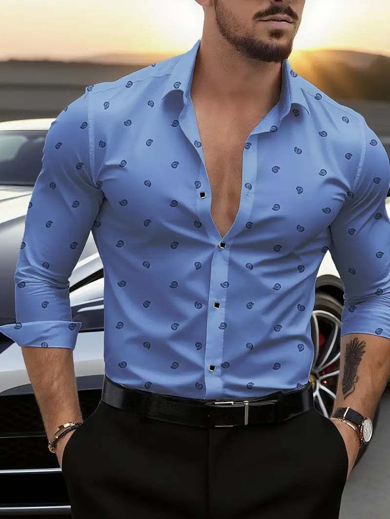 Men's Street Style Business Casual Printed Long Sleeve Shirt