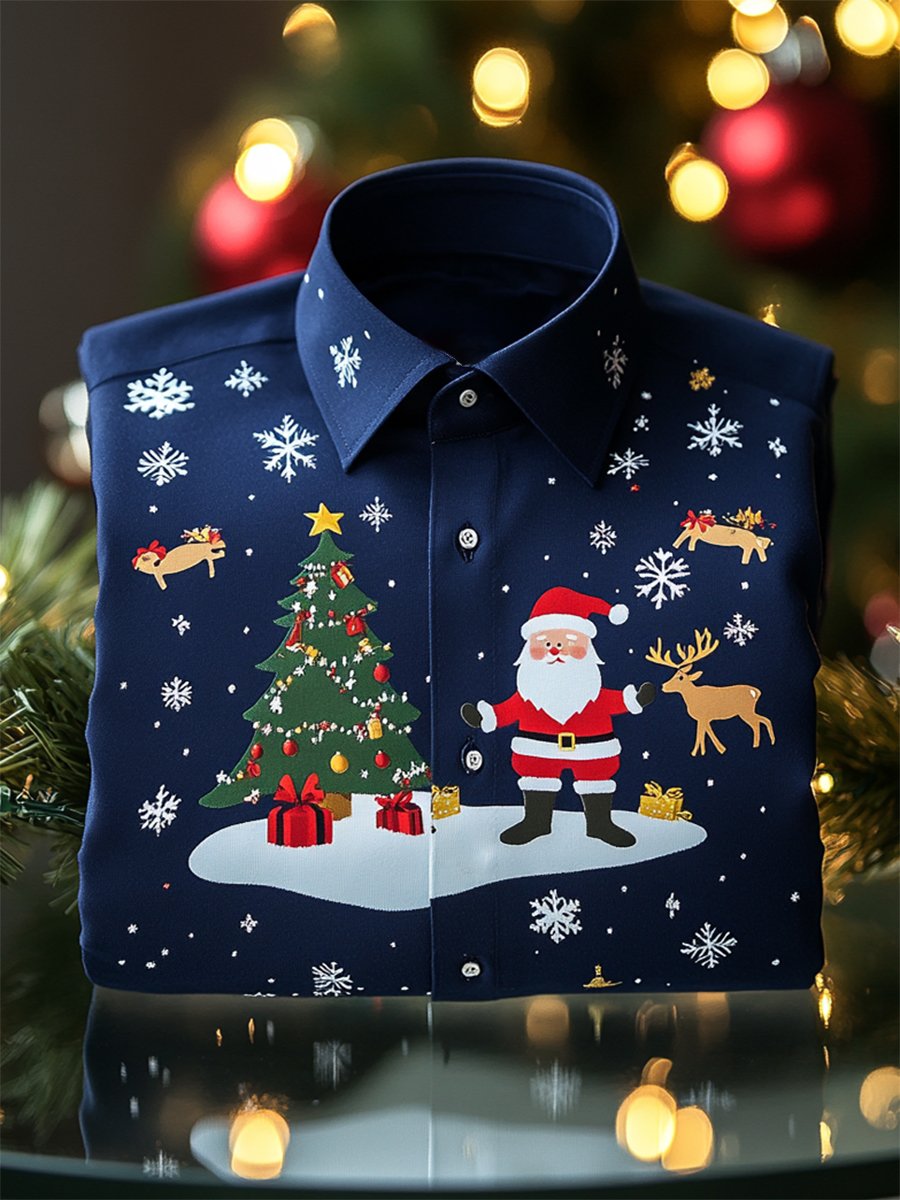Men's Luxurious Satin Christmas Long Sleeve Shirt