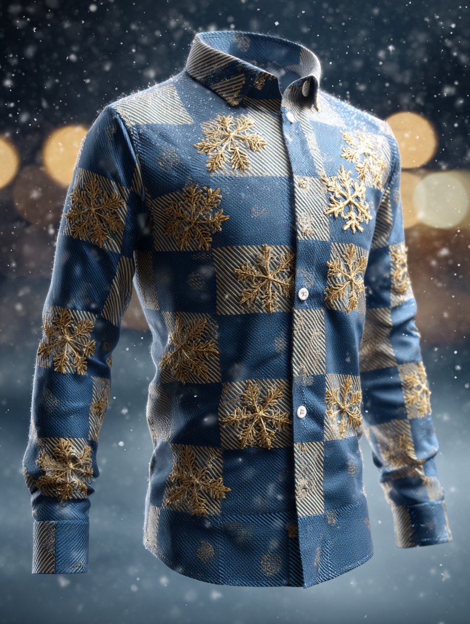 Men's Business Luxury Retro Christmas Plaid Snowflake Long Sleeve Shirt