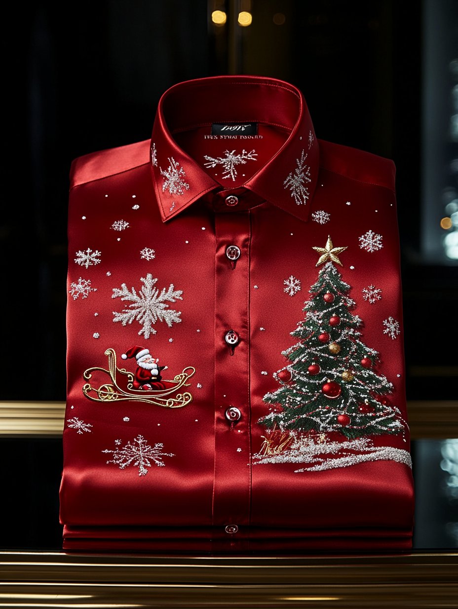 Men's Christmas Satin Luxe Long Sleeve Button Down Shirt