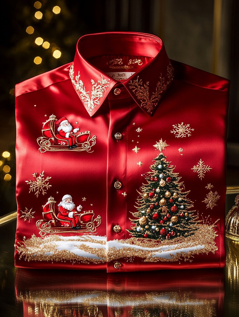 Men's Christmas Satin Luxe Long Sleeve Button Down Shirt