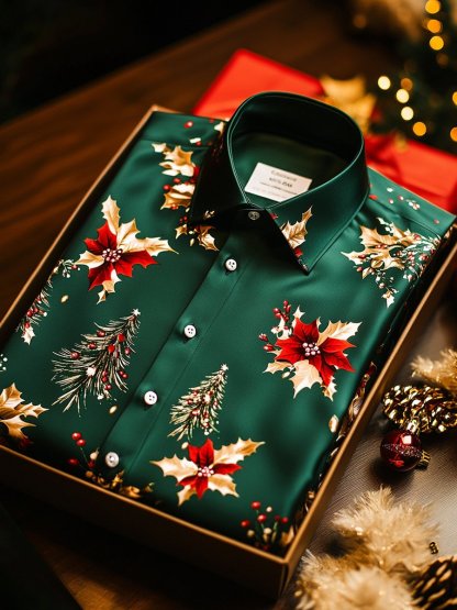 Men's Business Holly Christmas Long Sleeve Shirt