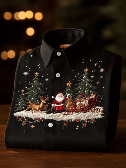 Men's Business Luxury Christmas Santa Claus Printed Long Sleeve Shirt