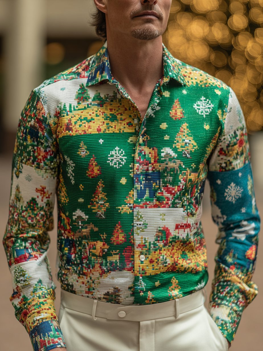 Men's Business Christmas Print Long Sleeve Shirt