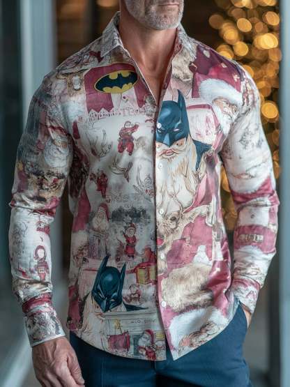 Men's Business Christmas Print Long Sleeve Shirt