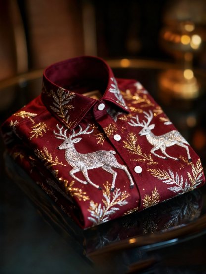 Men's Luxury Christmas Party Long Sleeve Button-Down Shirt