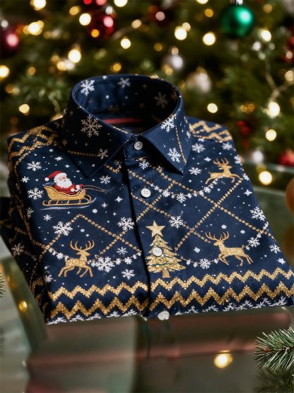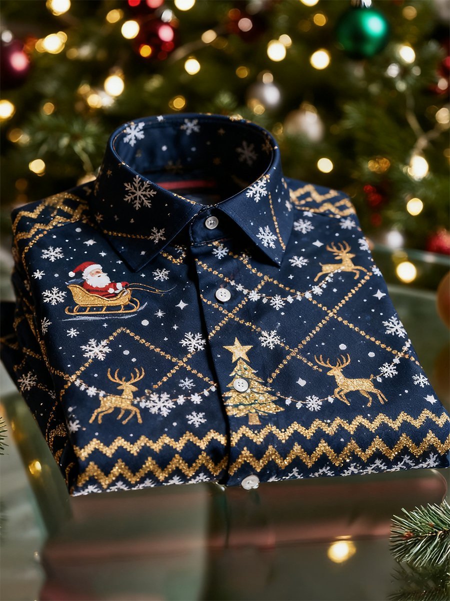 Men's Christmas Long Sleeve Button-Down Shirt