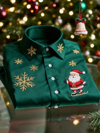 Men's Christmas Long Sleeve Button-Down Shirt