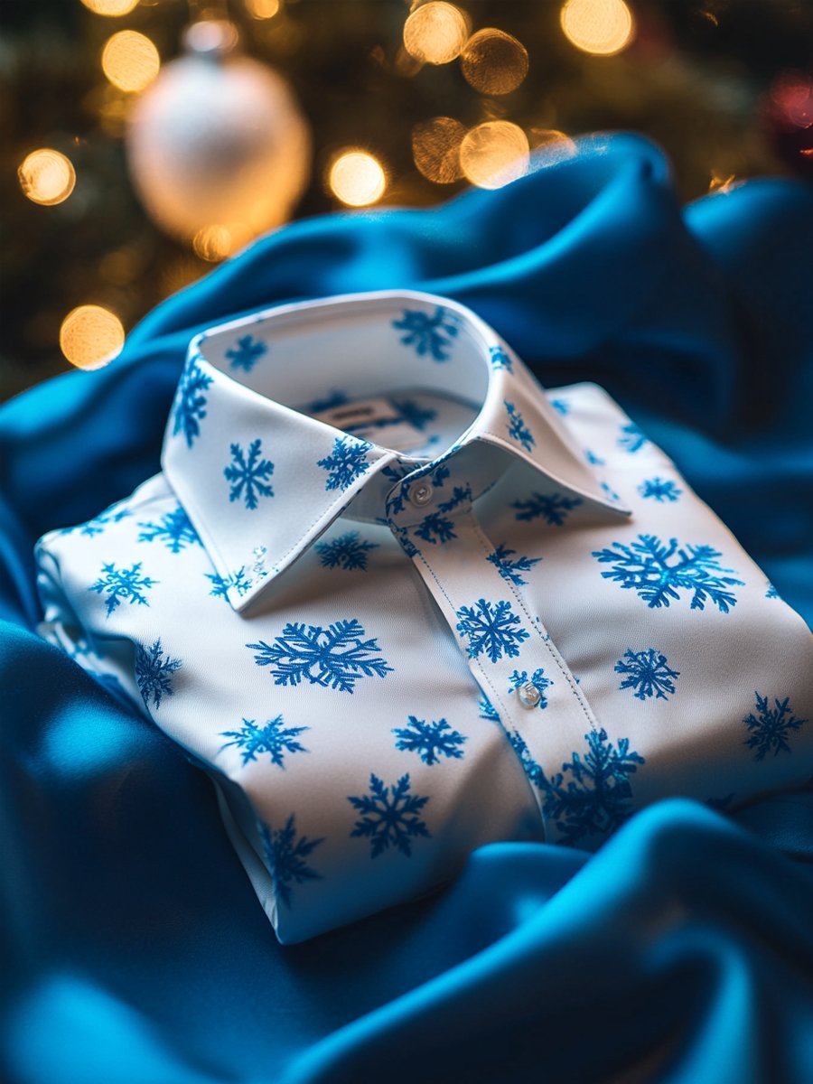 Christmas Men's Business Luxury Snowflake Print Long Sleeve Shirt