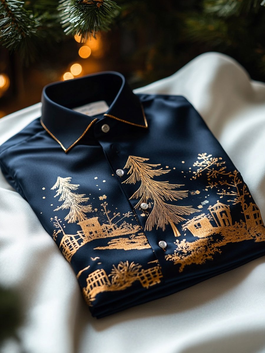 Christmas Men's Business Luxury Tree Long Sleeve Shirt
