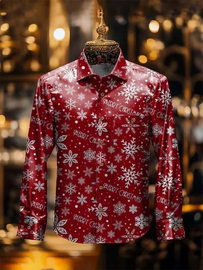 Men's Luxury Christmas Contrast Print Long Sleeve Pocket Shirt