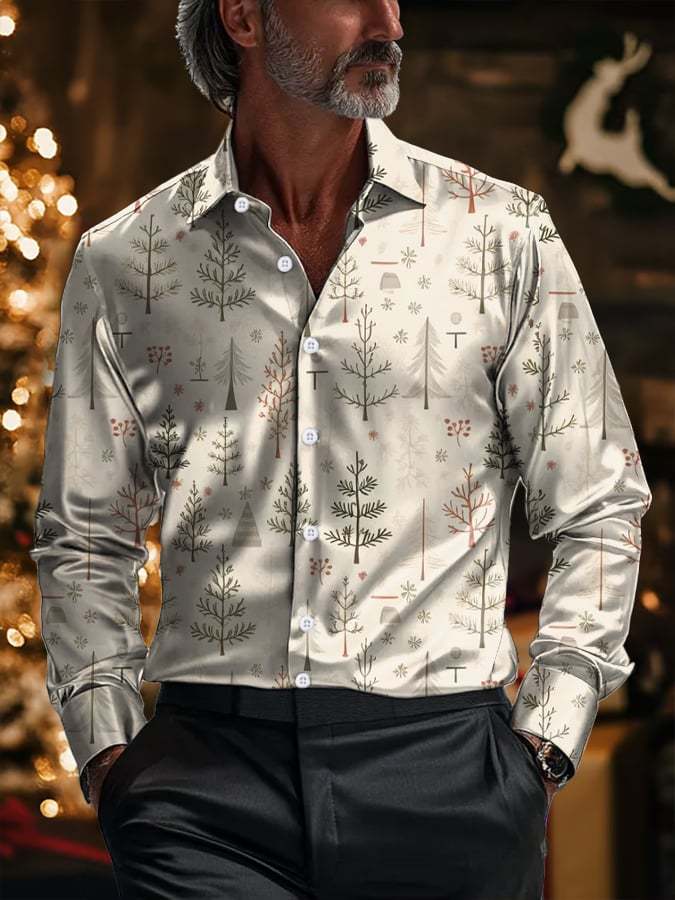 Men's Luxury Christmas Contrast Color Print Long Sleeve Shirt