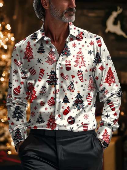 Men's Luxury Christmas Contrast Color Print Long Sleeve Shirt