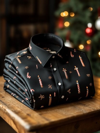 Men's Business Luxury Christmas Candle Print Long Sleeve Shirt