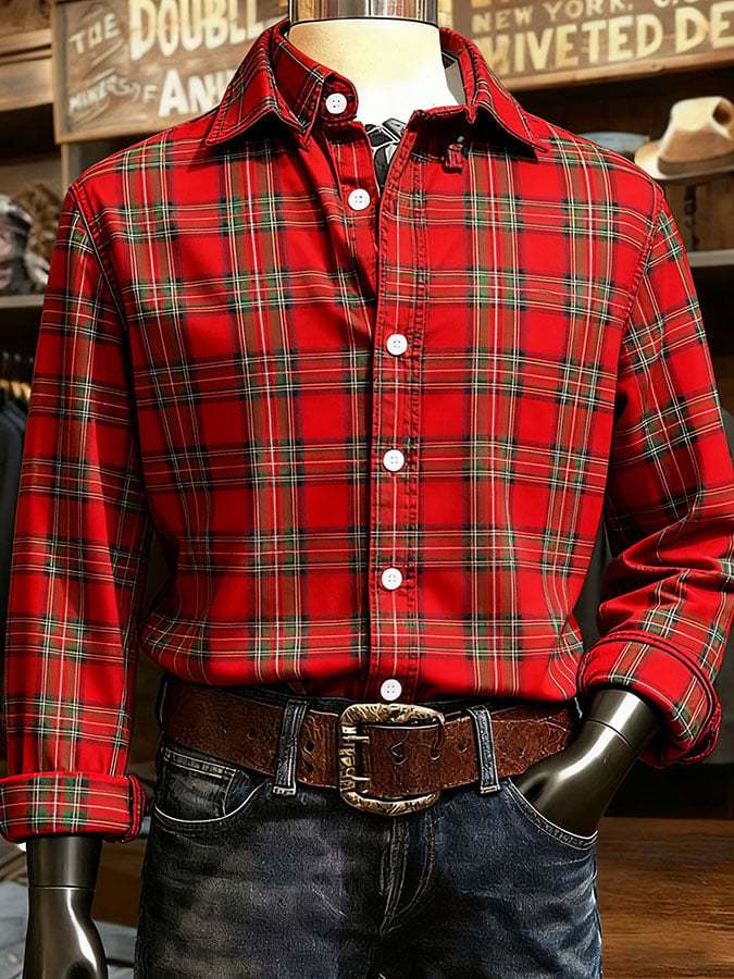 Men's Christmas Plaid Print Long Sleeve Casual Shirt