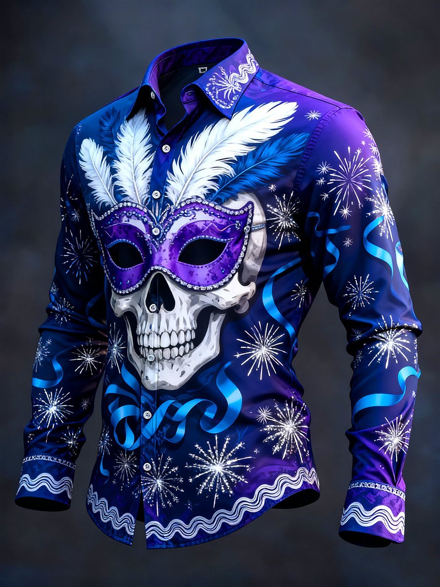 Men's Retro Carnival Skull Long-Sleeve Shirt